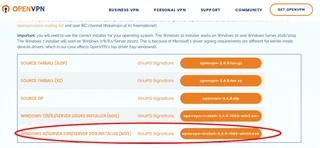 You need to visit the OpenVPN downloads page and download the latest Windows installer. You will most likely want to download the Windows 10 installer.