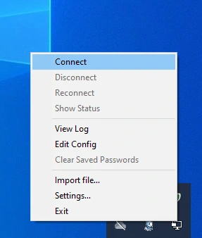 The next time you want to connect, simply find the OpenVPN icon again, right-click it, and click Connect.