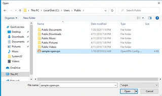 Now you need to browse through the computer’s file system and find your .ovpn file. It may be in your Downloads folder, or another location that you chose. Find the file and double-click it to add it to OpenVPN.